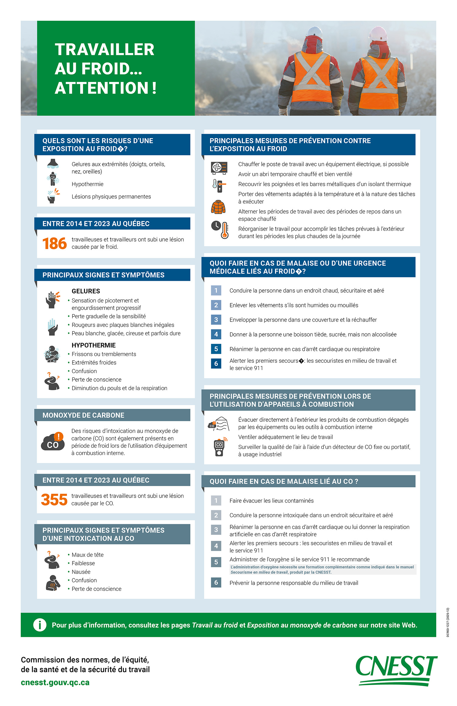 En cette période hivernale, l’AQIEA relaie une affiche d’information récemment publiée par la CNESST concernant la prévention des risques liés au travail au froid et à l’exposition au monoxyde de carbone.